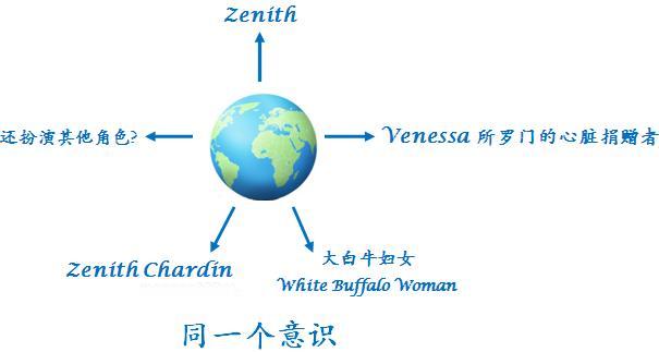 在小说第22章里,查丁博士(Zenith Chardin),她拜访所罗门讨论Gemini(Quantusum的别名),她的名字和地球母亲一样是Zenith。
