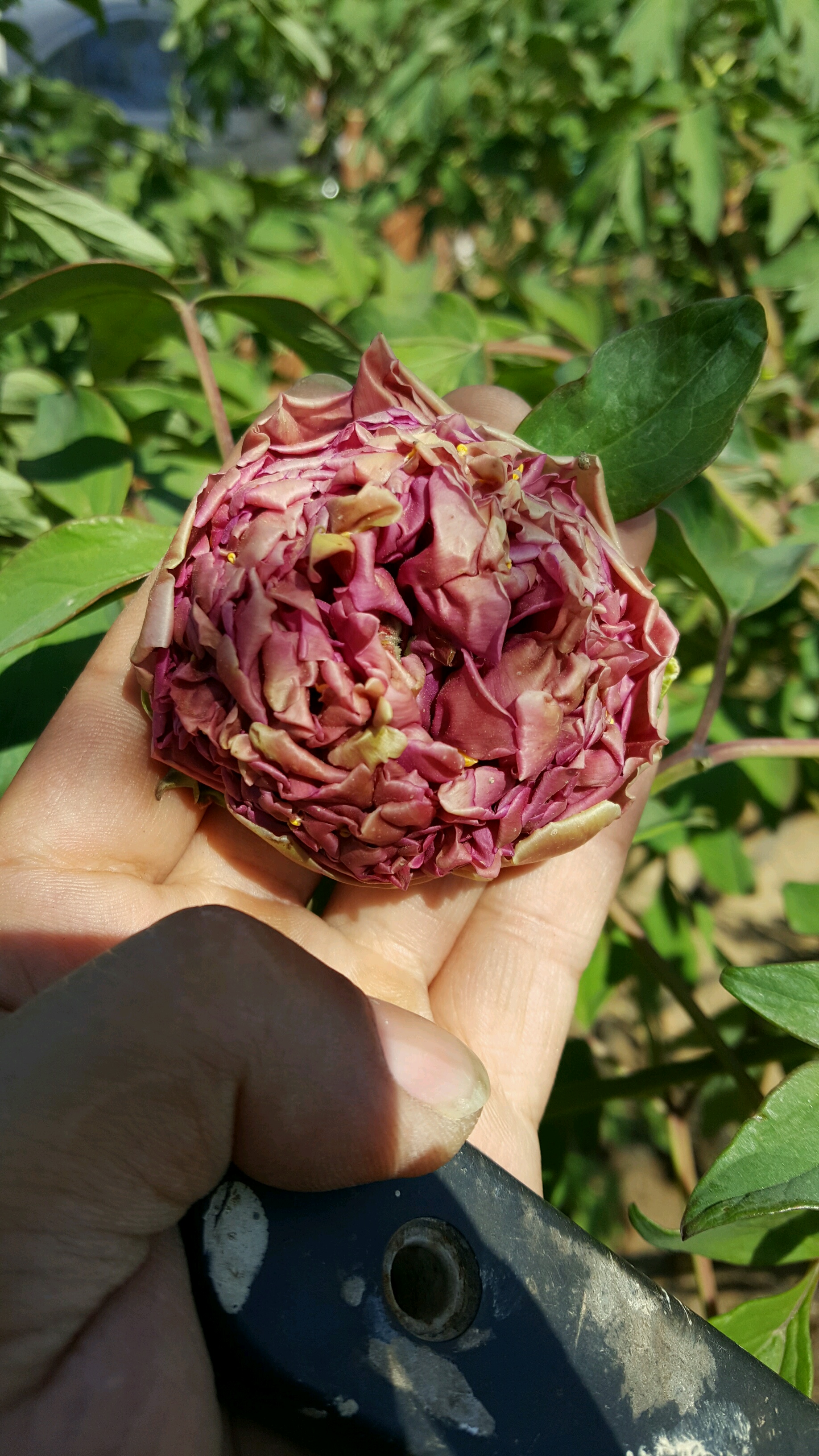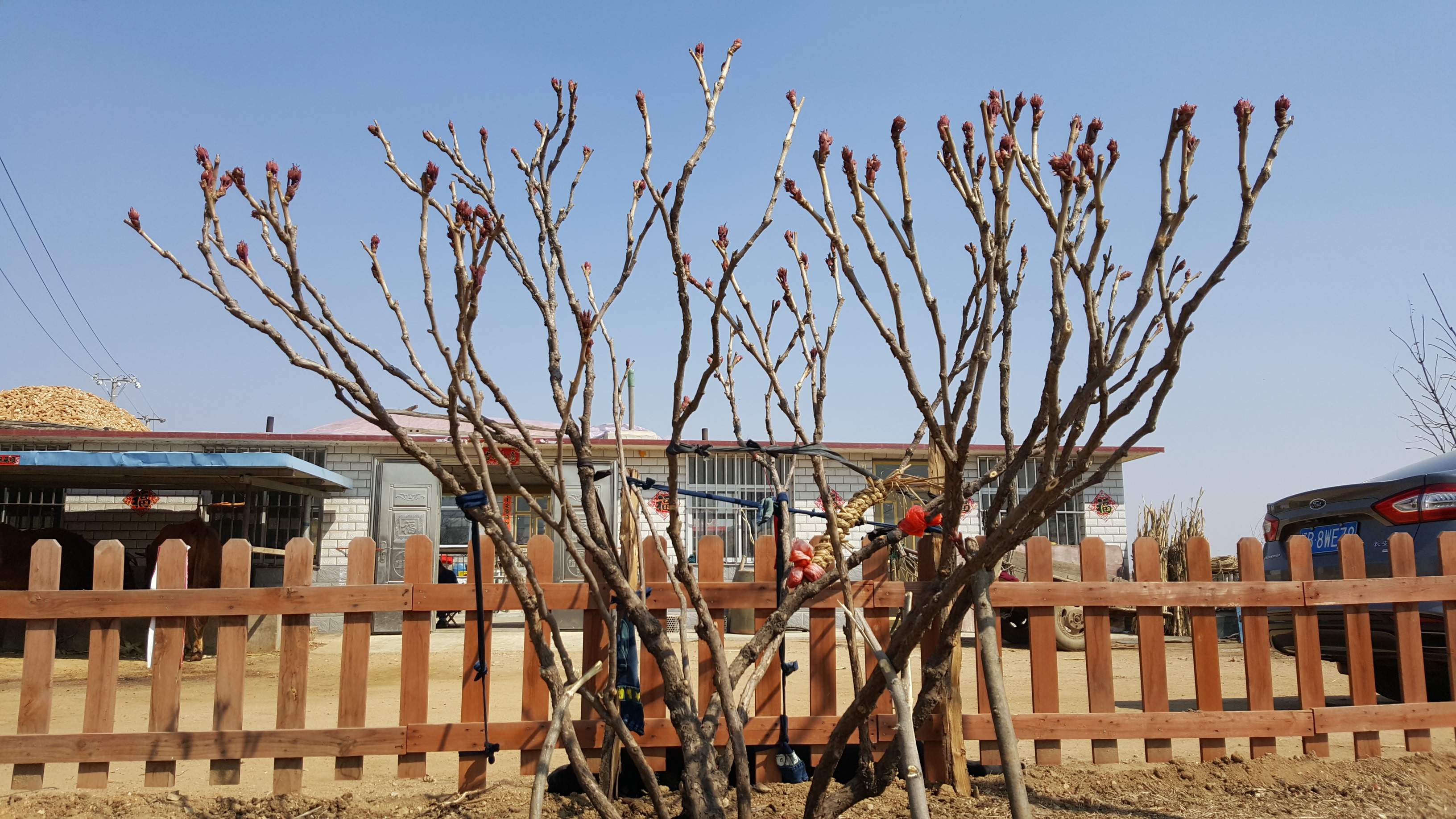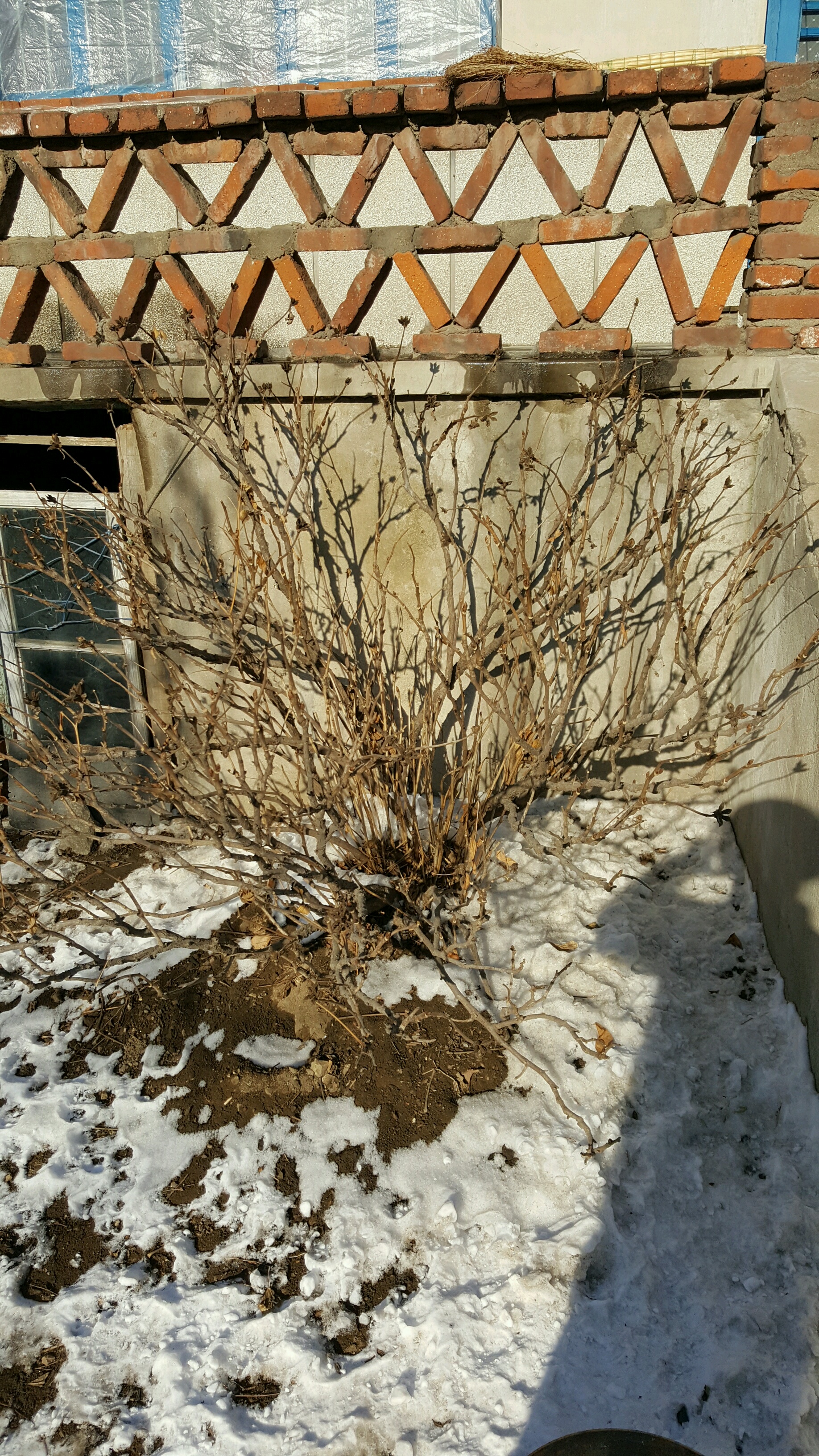 因本人在啤酒厂工作,所以每年快过年的时候我都会去几位要好的朋友家,给他们送几箱啤酒喝。这次也不例外,到了朋友家跟朋友闲聊时,朋友说在他村里有一户人家里有两个牡丹,都是养了几十年的,于是就决定去看看,第一眼看到这两株牡丹时,非常震撼,同时心里也为这两株牡丹觉得惋惜,这么多年主人家对她们根本就没有管理,长的歪歪扭扭,杂乱无章,毫无形状可言!