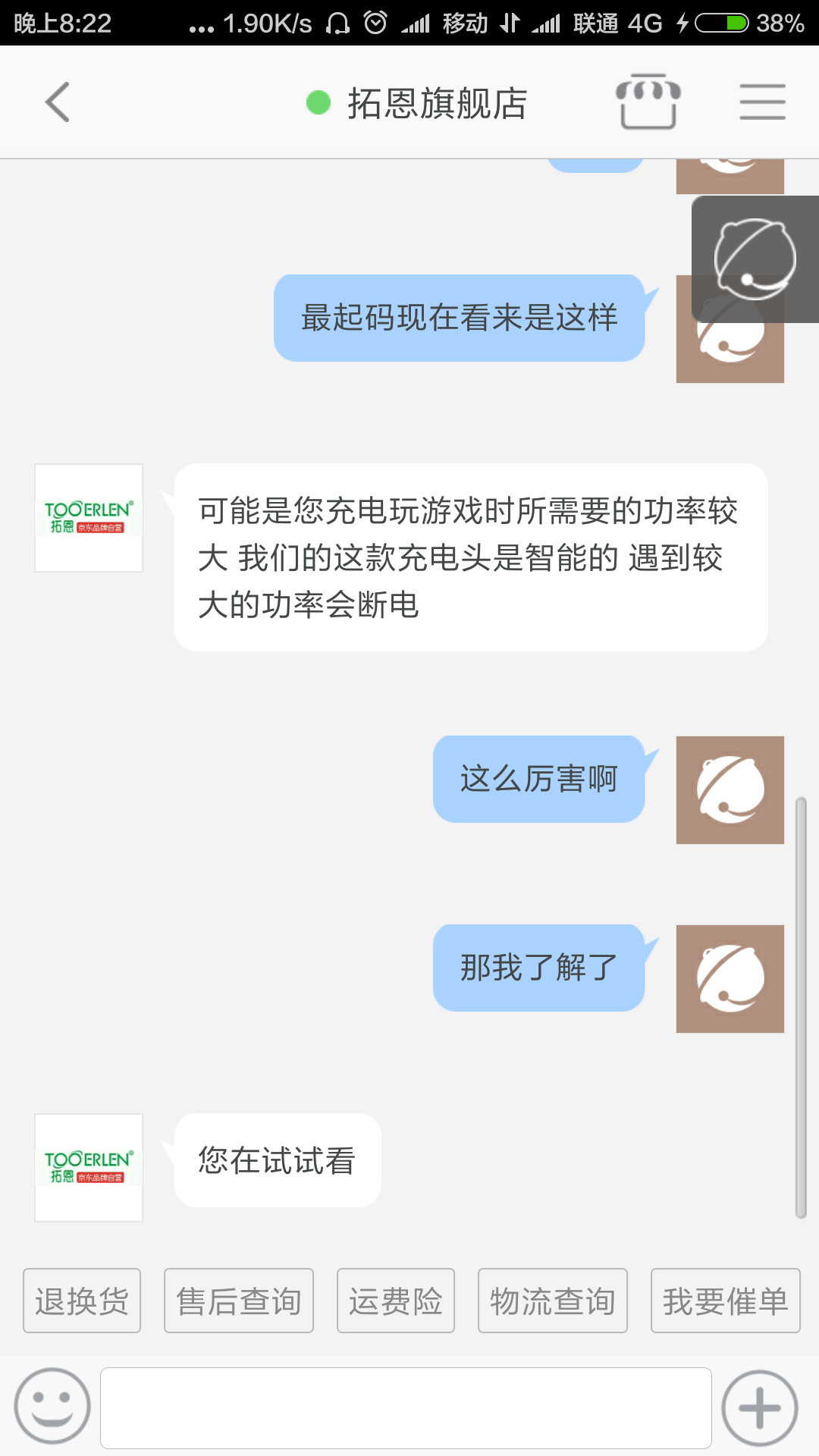 我买了充电器一玩游戏就会自动断电如图客服给了我这样的解释我就想问问吧里有没有懂行的来解释解释