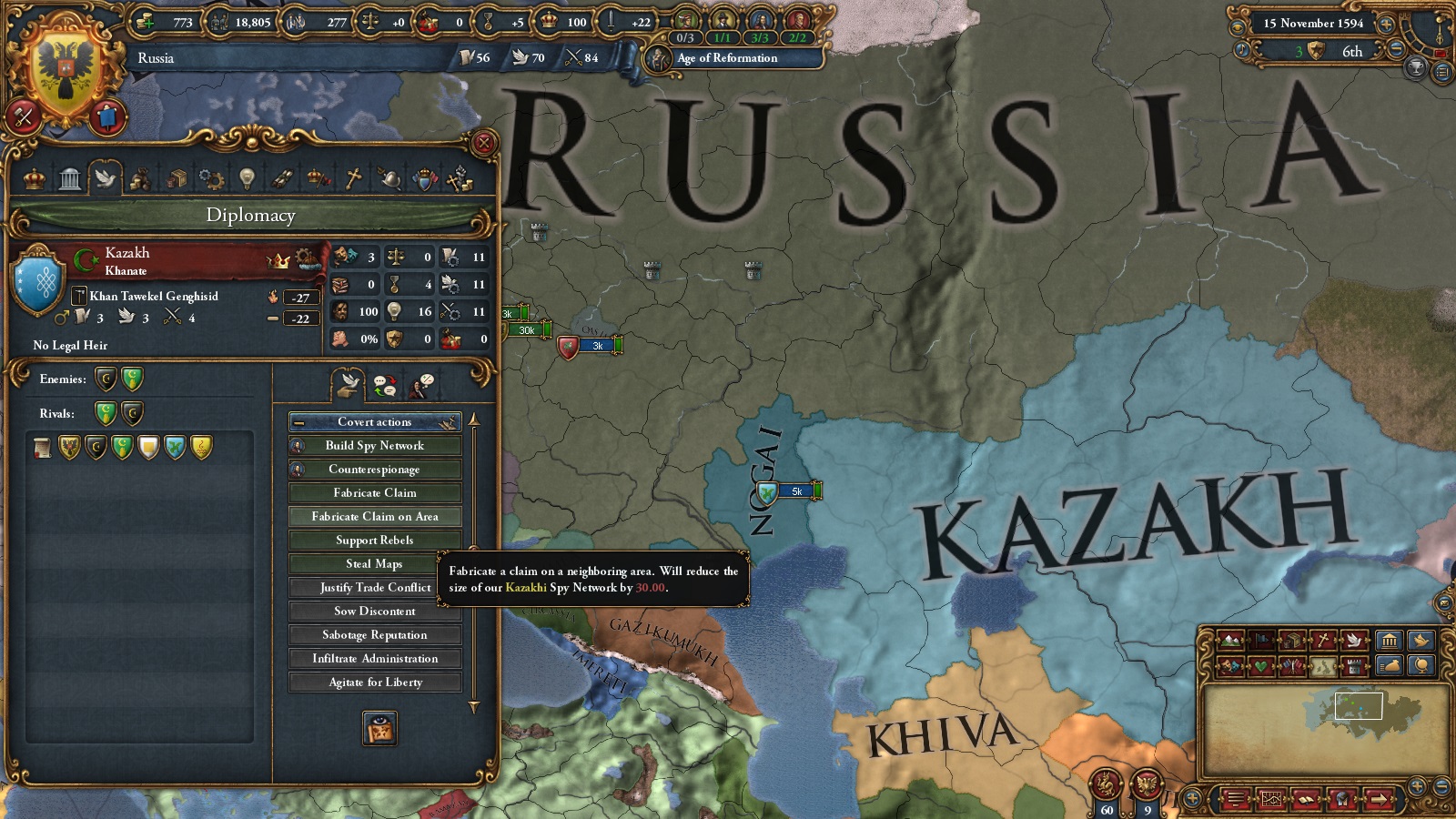1.沙皇国政体能一次性造一个area所有地的宣称,50间谍力量一次