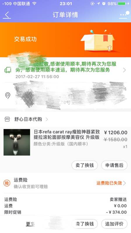 有了这些对比,上淘宝投诉多次,钱还给我。三个月之内卖家主动联系我,就把东西退给他就行了