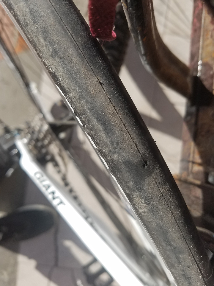 骑行一个多星期50公里,外胎出现小口,