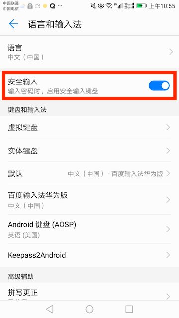 华为手机上keepass2android键盘无法使用?