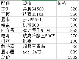 显示器买二手的,能多500块预算。300块的500G机械是什么鬼? 推荐2T,也就400多块。这配置400W电源就够了,能省几十块,板U买套装+硅胶+散热那种比你这便宜几十块呢。剩下的加点钱上标配799。