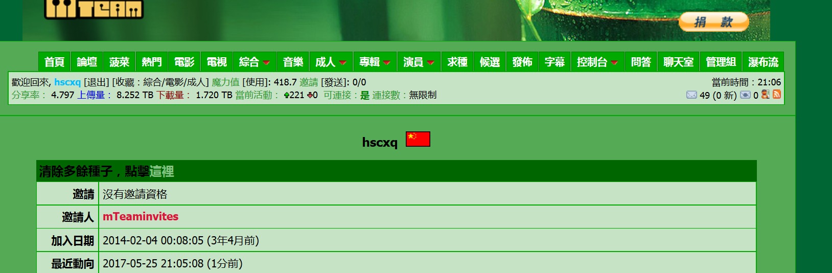 CHD入站时间基本跟ttg是同时期,账号也很珍惜,求权贵发码,邮箱