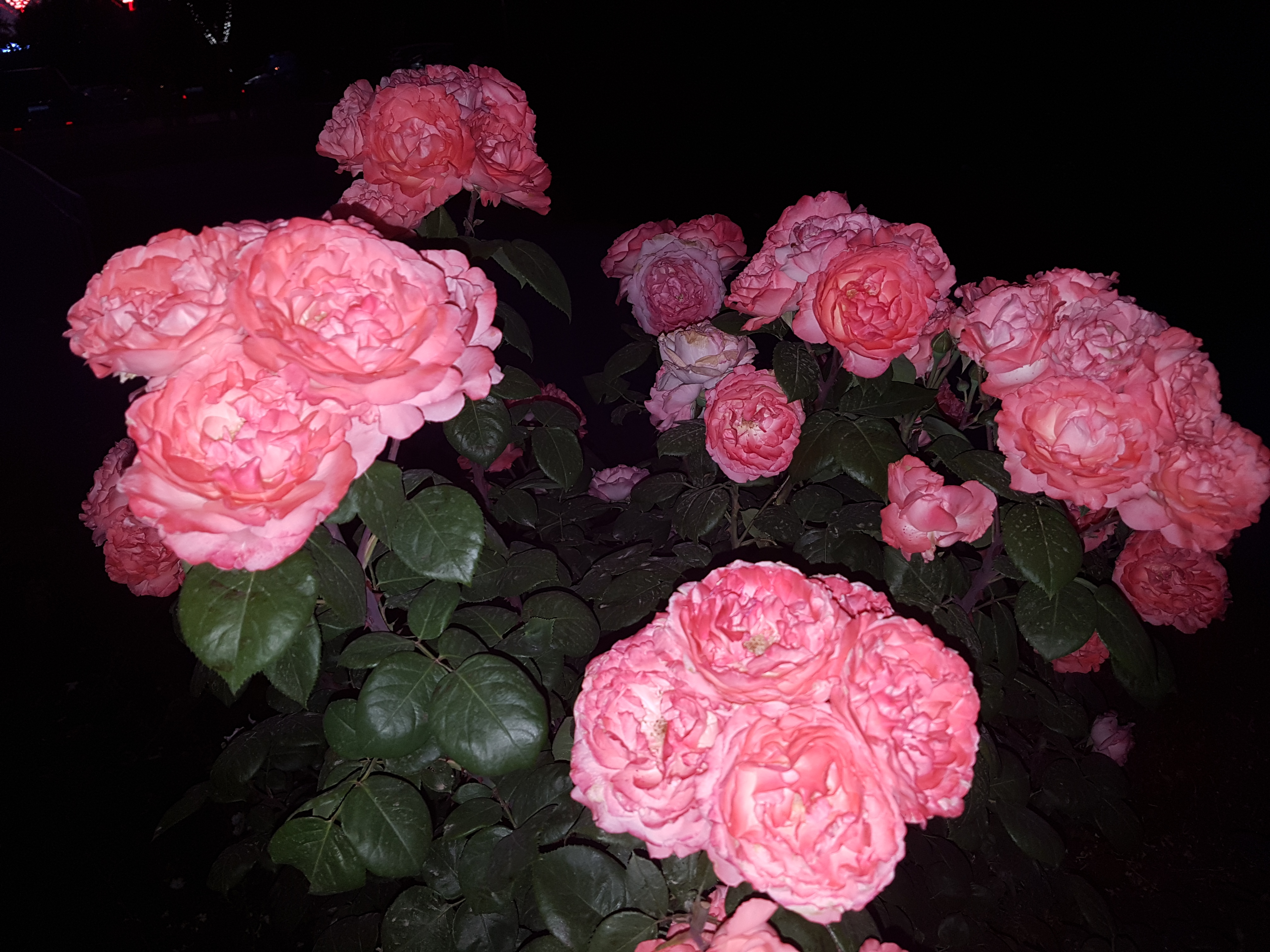 看见月季就挪不动脚了,拍了好一会儿,天色完全暗下来了,顺便就拍了几张夜景,哈哈。不会拍,多多指教