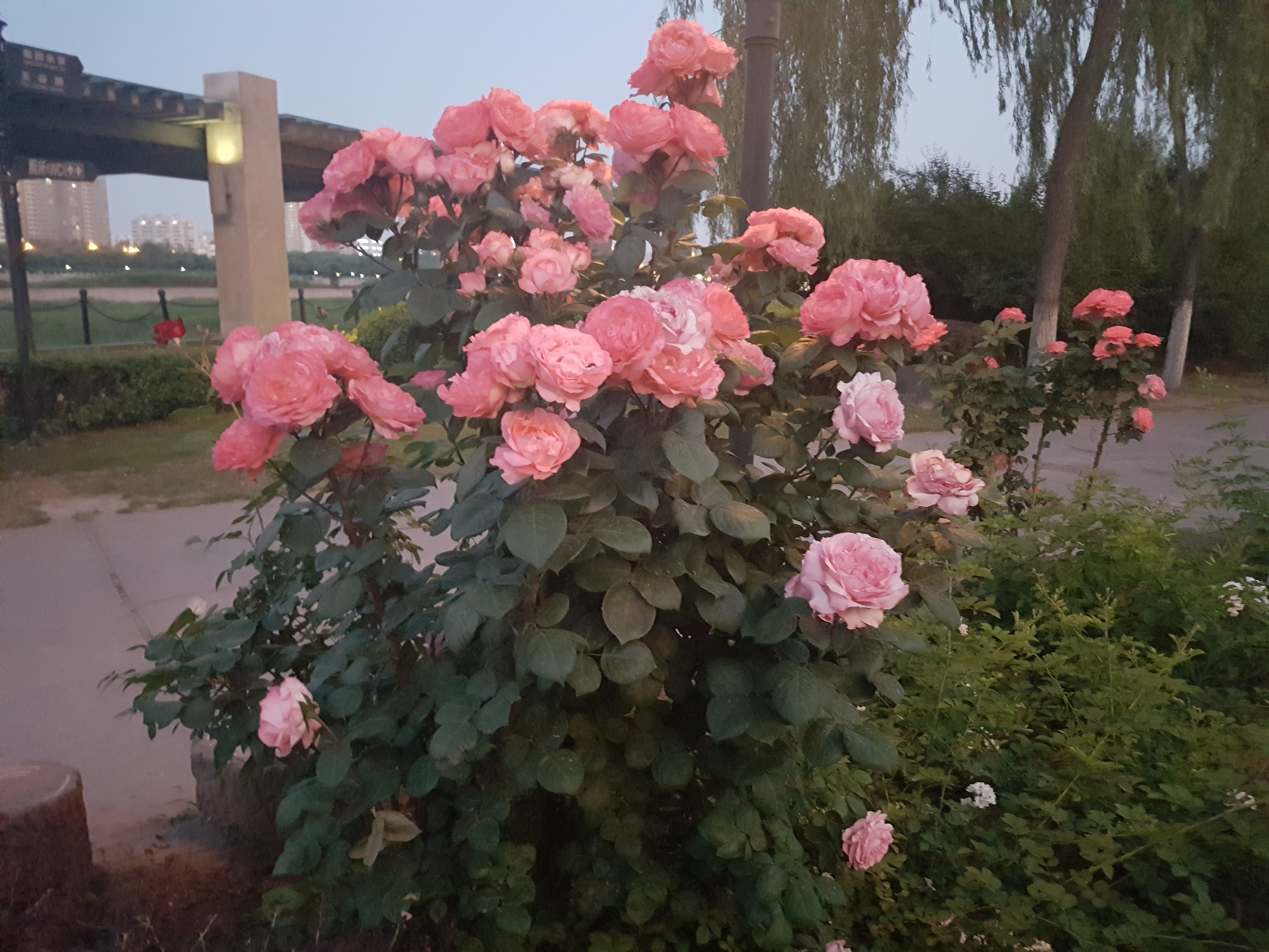 抬头一看,附近的月季开得正好,花量繁多,惊艳到了我,我甚至怀疑是欧月,怎么能这么美呢,可惜不知道品种