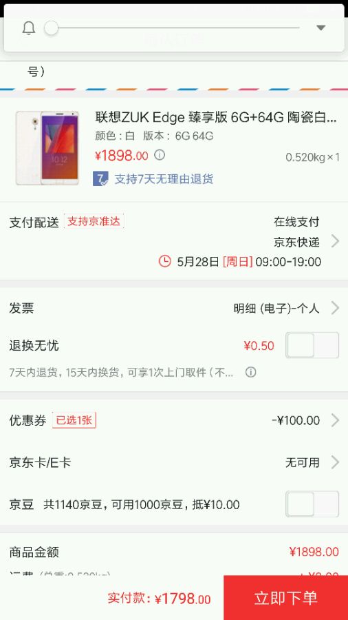 我又用了1000-30的白条券,希望能让我满意