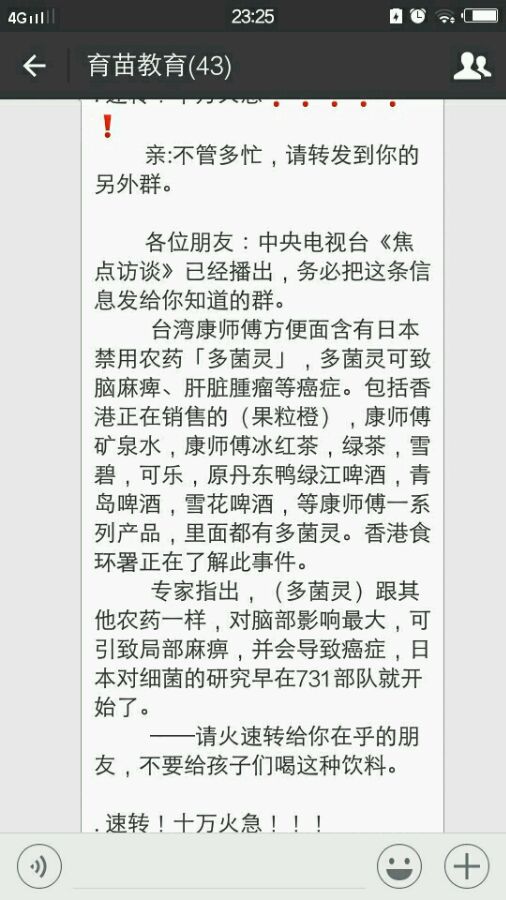 不是说康师傅里面有多菌灵吗?我不知道啊。给花喷多菌灵的时候,就可能会吸入的。