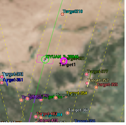 亲们,我要计算卫星传感器与地面目标的可见时间窗口,默认情况下传感器是无法左右侧摆的,造成一些地面目标与传感器不可见,如图中的target1。如果传感器左右侧摆一定的角度,这个目标就会进去传感器的视场之内。请教一下各位,如何设置传感器的侧摆角,使得卫星在飞行过程中传感器能调整姿态左右侧摆呢?
