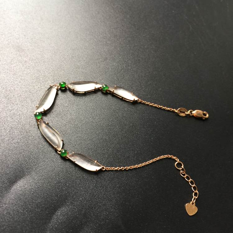 高冰玻璃种随形手链。完美饱满,种老通透。真金真钻镶嵌。裸石:16.5-5-4.1。:5600