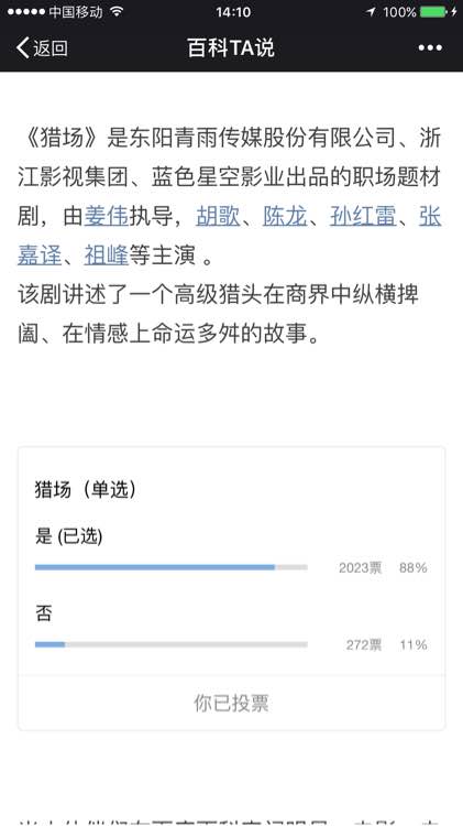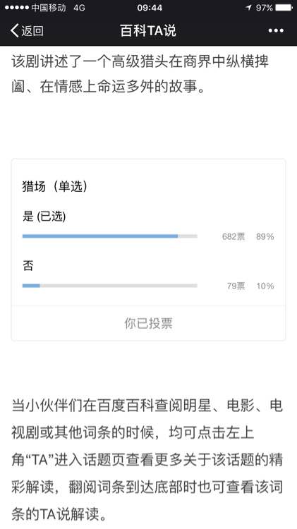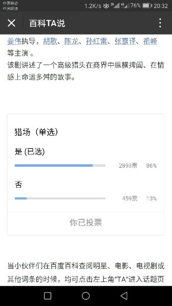 【重要投票】微信百科TA说关于猎场的投票
