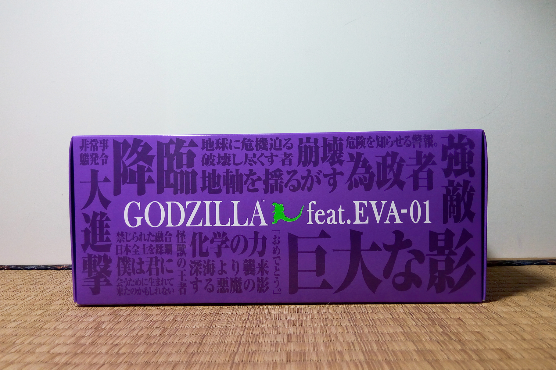紫色外盒的内部颜色为绿色,并印有哥斯拉vs新世纪福音战士的logo,让人眼前一亮。