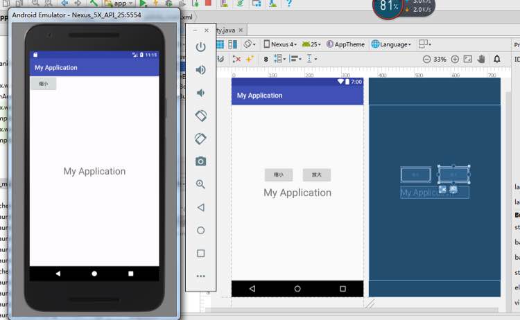安装到虚拟机上的控件位置和studio 里的不一样,那个放大按钮应该是和缩小按钮重叠了 怎么回事啊