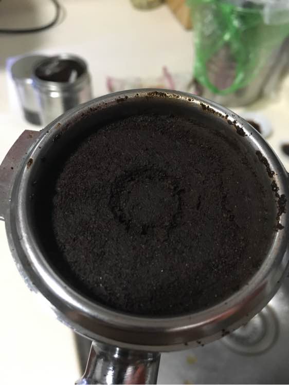 先玩单份,刚试了几次。没入磨豆机,用illy中粉玩的。第一次7克粉,没称,用的量勺平勺3.5克。两勺7克左右,萃取10秒就30ml了,压力很小,粉碗都是水。第二次3勺约10.5克,压粉力度都差不多,25秒30ml,压力正中,粉碗打开很湿,油脂薄。第三次,4勺约14克粉,萃取时间30秒30ml,压力到了扇形区域末端,粉碗打开倒出还比较整,大家看看第三次这个合格吗?另外单份真需要那么多粉吗?图片是第三次的状态