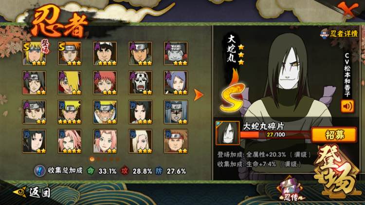 pk场你这号足够了,就剩下收集的乐趣了,你觉得纵观火影,有谁比大蛇丸存在感更强?二柱子的导师、三代的终结者、大战决胜的关键、兄弟之战也要露个脸....