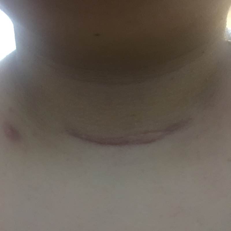 术后三个月 刀口开始起瘢痕了 这两张照片只差了一天 疤克跟美皮护一直三天打鱼两天晒网 昨天发现有点要起疤就赶紧贴了一天一夜的美皮护 结果今天一看更肿了