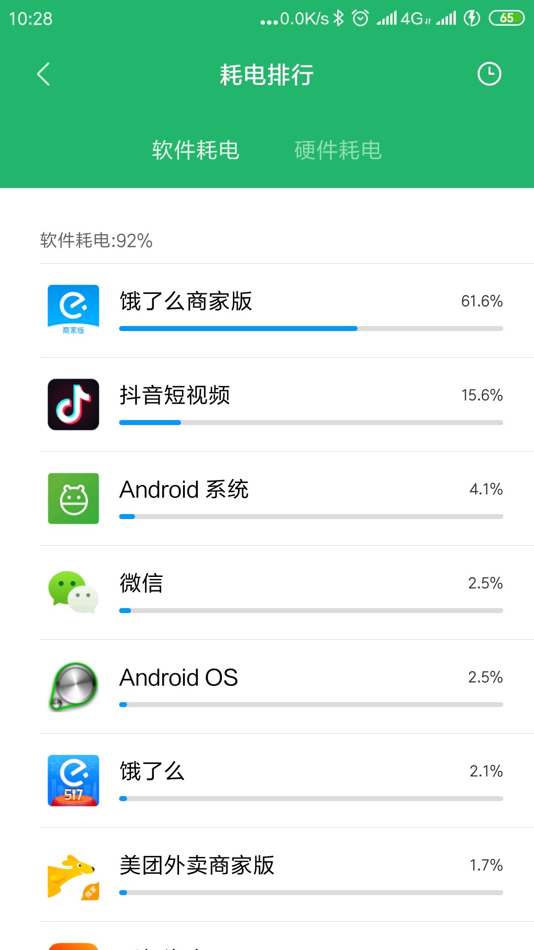 在两部手机上都试过,饿了么商家版耗电最厉害。人家美团百度商家版耗电很省,饿了么商家一直是电老虎,反馈从来都没用,现在最新版还不让反馈了![[怒]](/static/emoticons/u6012.png)