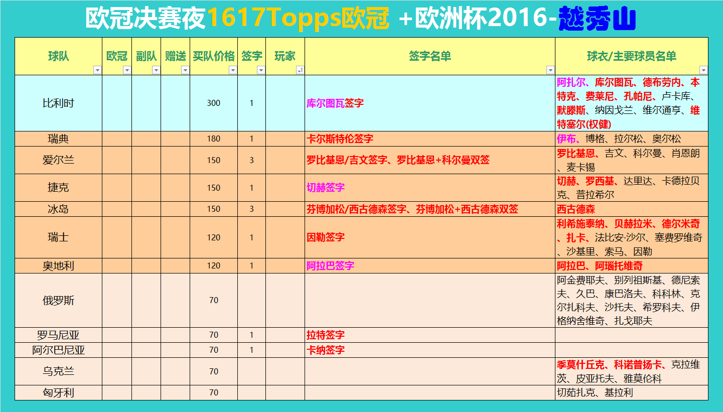 越秀山1箱2016欧洲杯+1箱1617新欧冠走起,两箱一起组,买队。