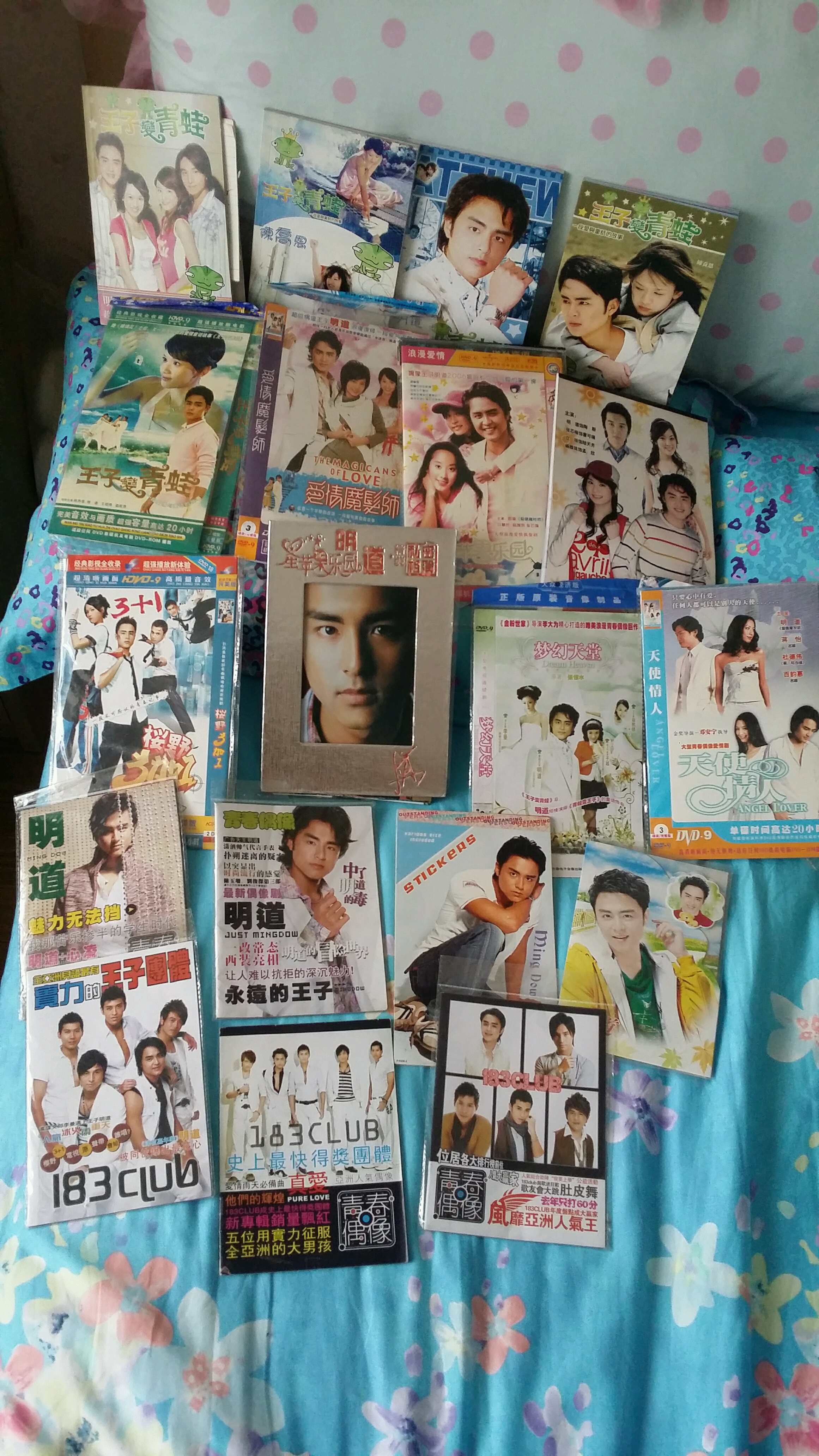 一入深坑从此一发不可收拾!每天一定会去文具店买明道的海报贴画磁带画册,贴画可能只是因为有其中一张不一样就收入囊中,毫不错过我明的帅颜