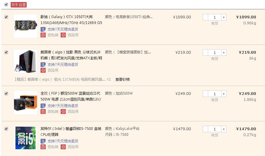 显卡买昂达的gtx1050ti cpu买散装吧