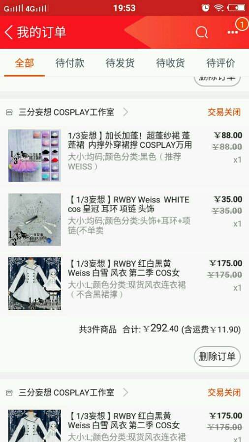 weiss 衣服+鞋子+假发+头饰+武器全套 320走!!!!!