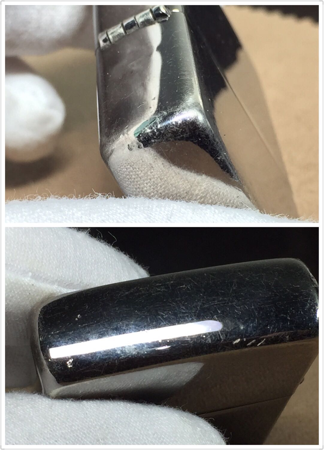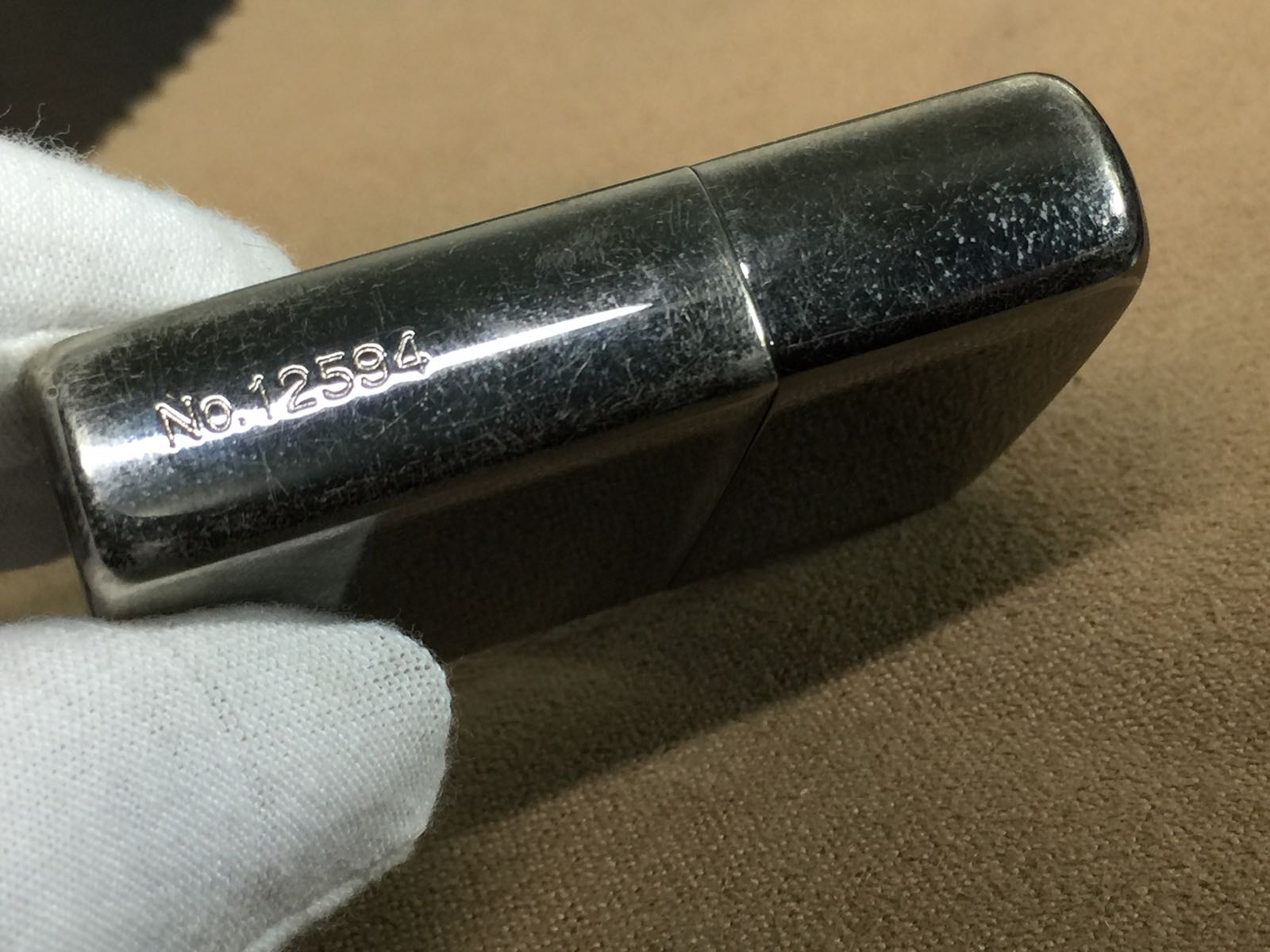 【具体描述】二手2004年9月 限量 吉宗,本机编号12594。黑冰底板单面全幅蚀刻填漆工艺。机身镀层大部分磨损,边角磕碰微距拍出,定义差品。铰链正常,原配05G内胆打火中等,无包装。