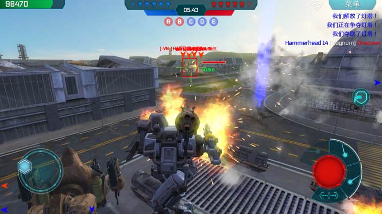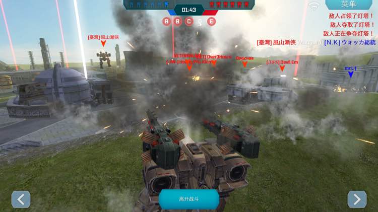 沙滩两个塔人稀少时,我方又齐刷刷往这两个塔走。最后不敌他们6人,毕竟少一个玩家,等于少4-5台机甲。