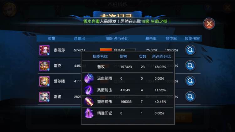 单体数据来看 打Boss来说,火女很强,第一个技能伤害奇高,加上火精灵的魔攻加成,爬塔刷图都有用,小炮第二,雷诺男弓全是垃圾输出。