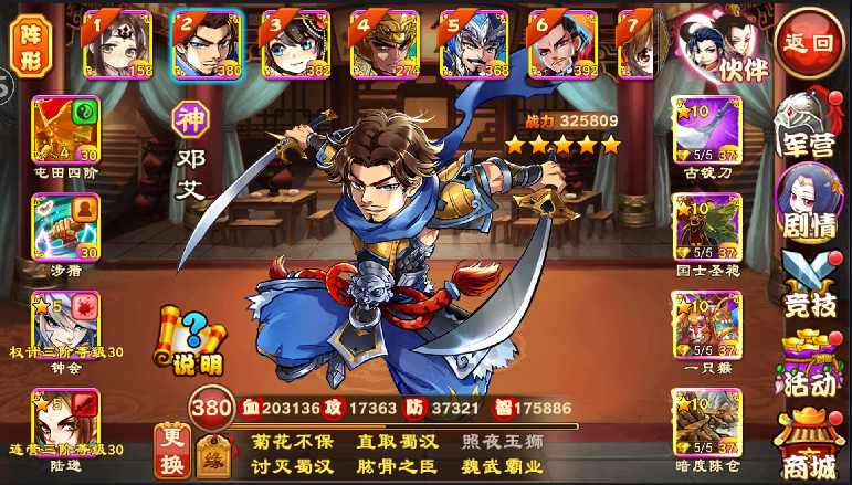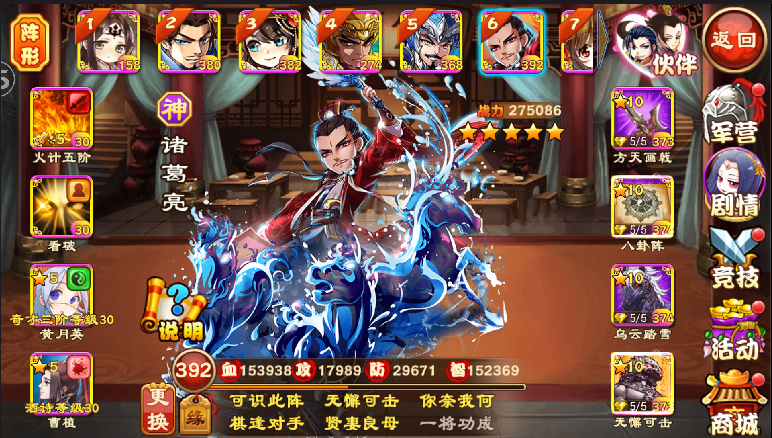 6号位 月亮,主要不舍得废了诸葛主,立了邓艾之后就一直留着了,月英没四阶,就是上来纯打打输出