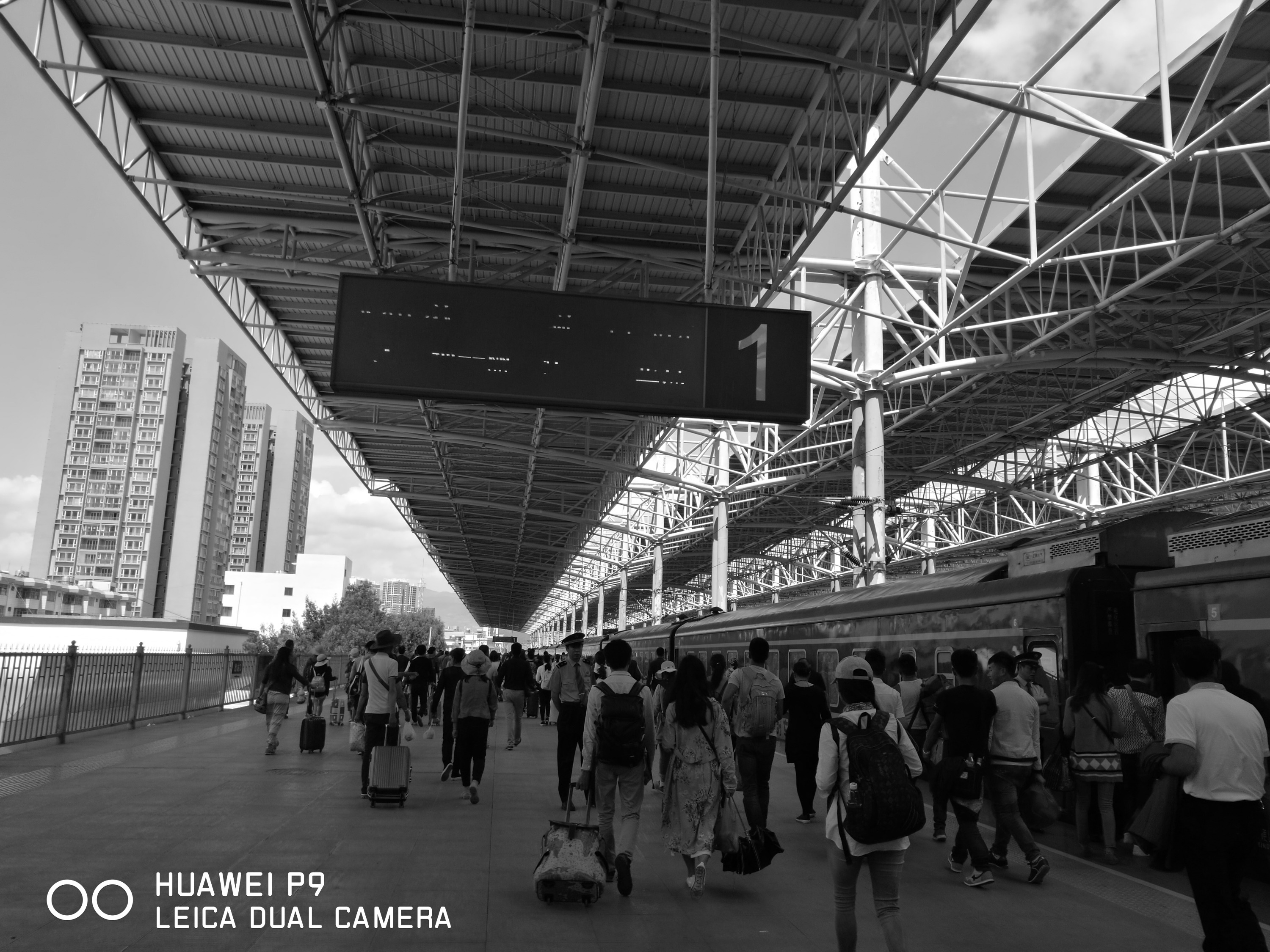 到达丽江,傍晚下了火车站。