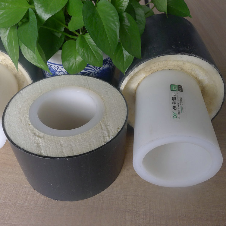 由聚乙烯外护管—PU保温—PE-RTⅡ型工作管三层结构组成,具有以下诸多特性:85℃以下供暖使用寿命50 年以上;重量轻,OD160 SDR11 PE-RTⅡ热力管重量仅为 159×5 钢管的三分之一,安装省时省力;采用热熔连接,施工简单可靠,成本低,系统密封好;保温性能好,导热系数低,PE-RTⅡ型管热损失仅为传统保温管材的25%,长期运行可节约大量能源,显著降低能源成本;柔韧性好,本体管材的断裂伸长率可达500%以上,能有效抵抗地震和地基沉降;具有很强的防水和耐腐蚀能力,无需敷设管沟,可直接埋入地下或水中,施工简便快捷,综合造价低,节省工程费用20%;在低温条件下也具有良好的耐腐蚀和耐冲击性能,可直接埋入冻土层;免维护,运行费用低 ;内壁光滑,输送阻力小,粗糙度仅为新焊接钢管的 1/3 至 1/9;内壁不会由于沉积物堆积堵塞表阀,利于分户供热计量;不会发生由于生锈、结垢导致内径变小,整个服役期无水量衰减;耐化学性好,与常见酸碱盐不发生反应,不需防腐;绿色环保可回收复用。