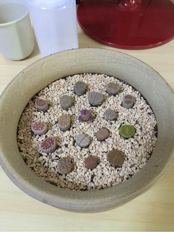 换盆后开始发皱的生石花有一两颗恢复了不皱了 距离浇大水六天了 浇了以后天天下雨开了四天的电风扇 是不是说明开始生根了
