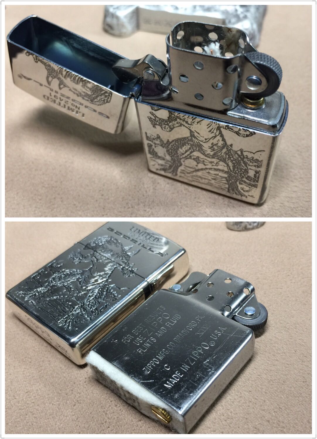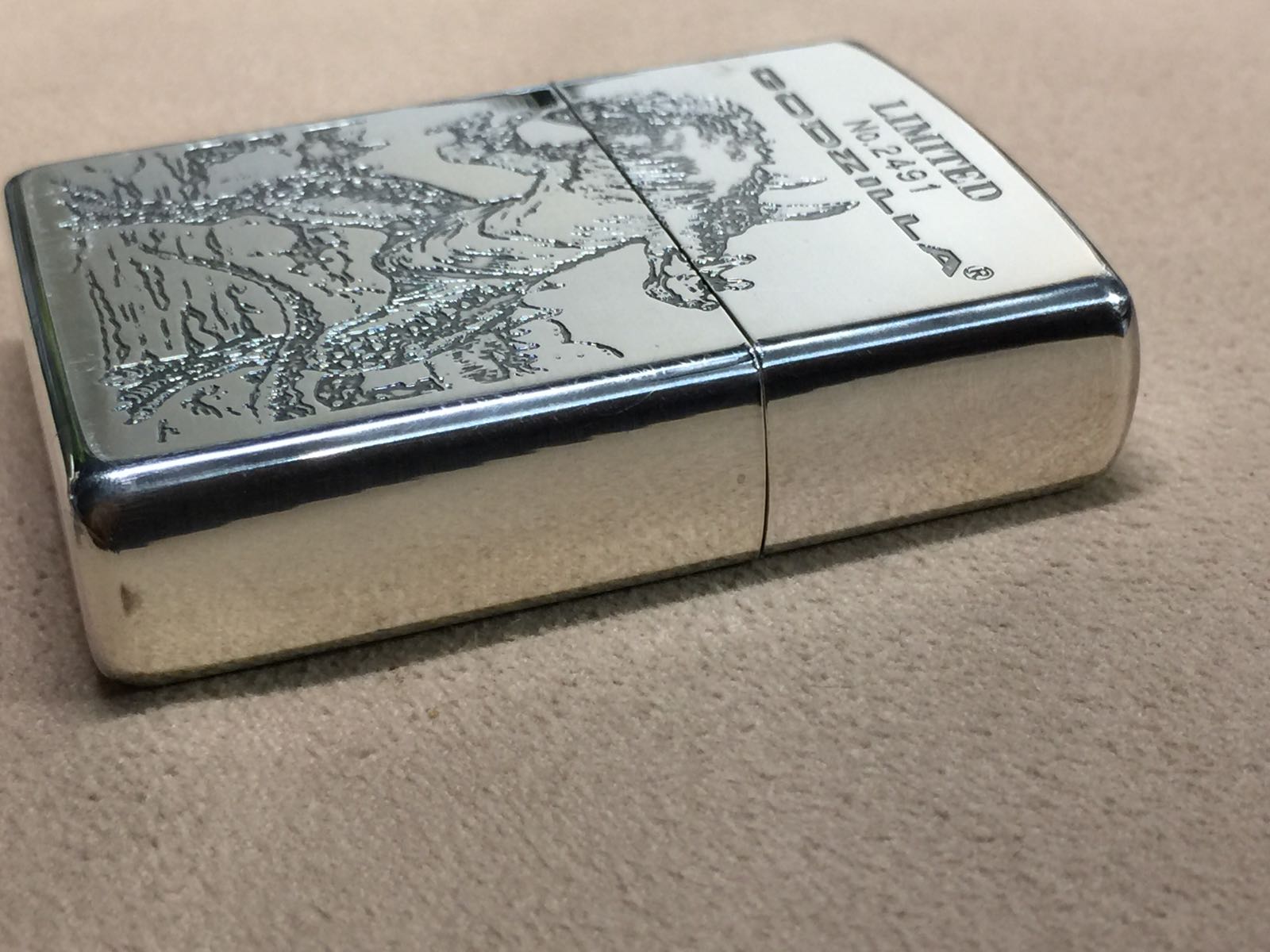 【具体描述】全新1998年3月 哥斯拉 限量底座机,本机编号2491。底座为合金材质,较沉,机身镀银底板双面蚀刻填漆工艺。运输不当,镀银层局部擦丝擦痕强光拍出,顶部和底部轻微氧化,底部边缘一处小针眼微距圈出,定义全新差品。原配全新同年同月内胆,全套原包装齐全。