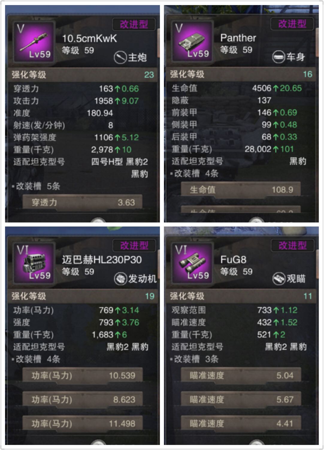 装备图如下,对于黑枪中坦最重要的四项装备。