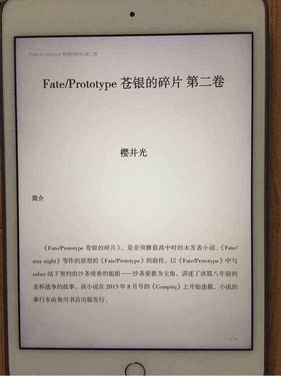 分享多看EPUB版本的Fate /Prototype 苍银的碎片,仅分享给有需要的同好,喜欢作品请支持天闻角川正版。