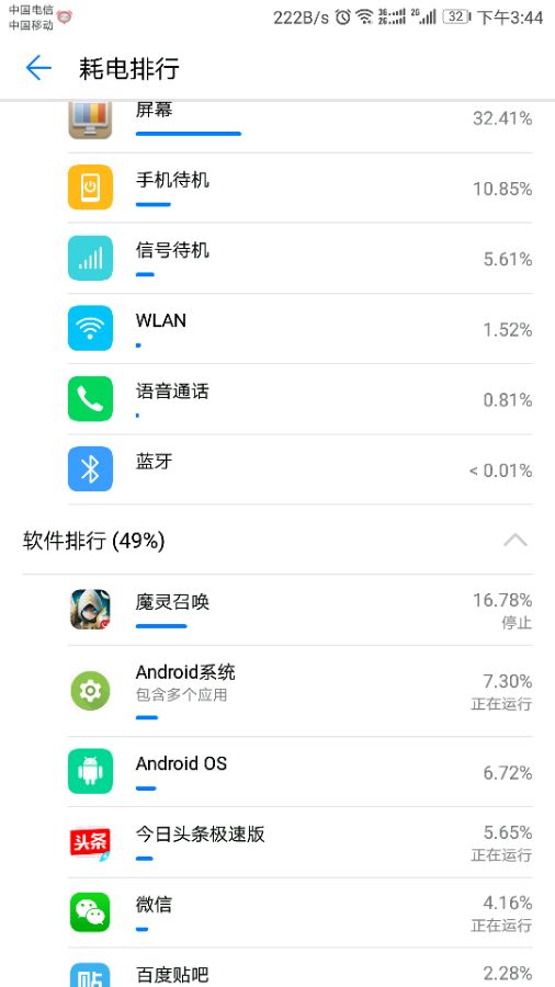 不是晒内存就是喷耗电,我上几张最新213的耗电。去年12月份买的,差不多已用半年。还是可以亮屏10小时的,绝大部分时间电信3G上网,其中还包括手机网络一个半小时游戏。大概七个小时网络信号弱。到家才有无线
