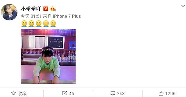 6月16日凌晨,赵本山女儿小球球在微博晒出一张照片,还配上多个拥抱的表情。