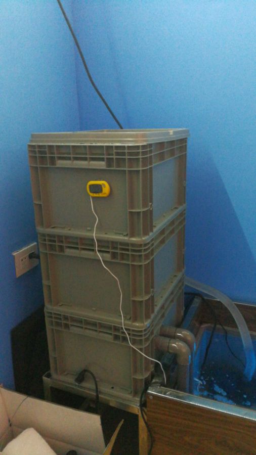 过滤器三层总高70 一层白棉加黑棉 二层 12斤十家加一和4斤陶瓷环 三层 石英细菌屋