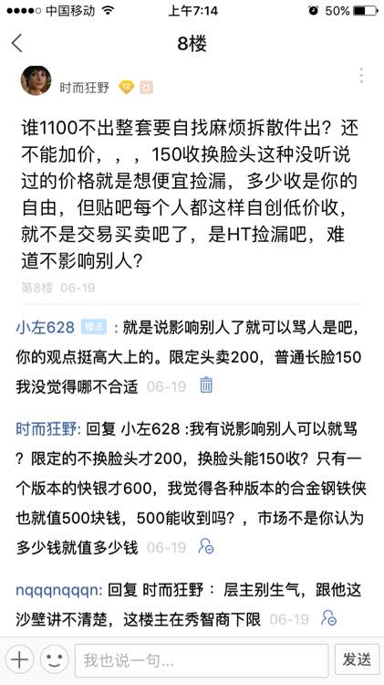回复 pengyini482 :只是觉得,有限定了再这么收是浪费,现在一看买卖这么好,我去问问那些在我贴里抬价的剩下的他们收不收,还是都只是嘴炮侠