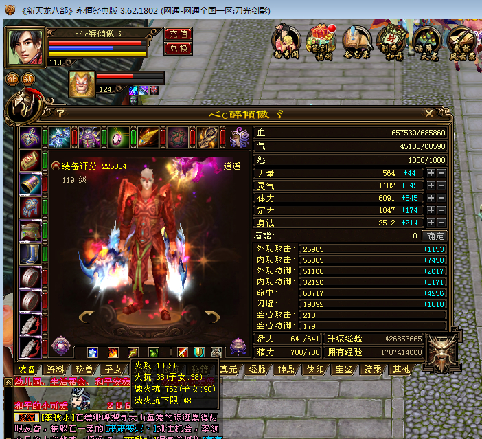 看不到属性和减抗,不过装备应该不太好,面板并不高