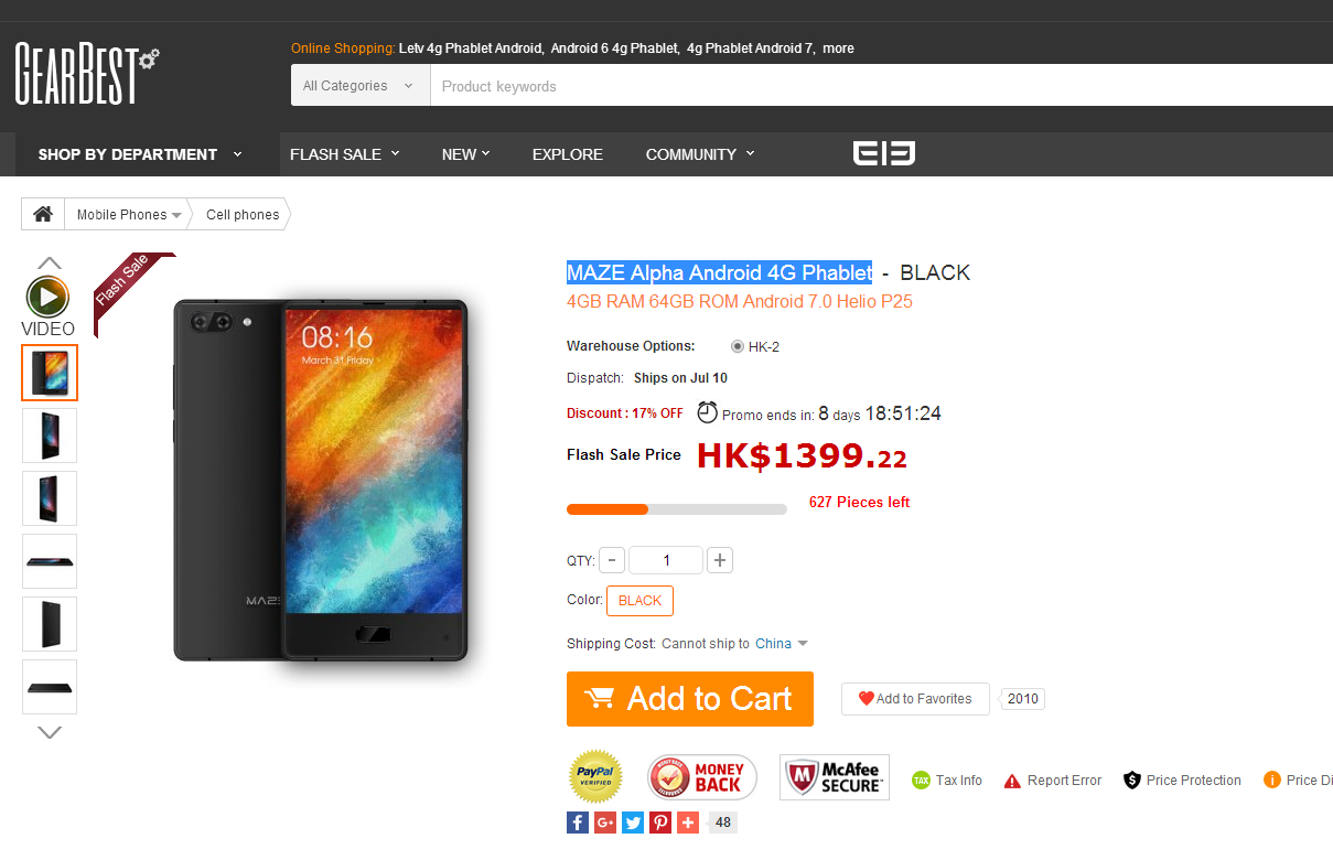 关于Maze Alpha 1000全面屏手机,只是看到一点点报道,说是已经开启预售,可是到哪里去接受预售?在哪个平台接受预售?没有答案。就连Maze Alpha官网都找不到,更不要说是Maze Alpha手机官网了。我真不知道这是不是一种营销噱头,耍猴呢!
