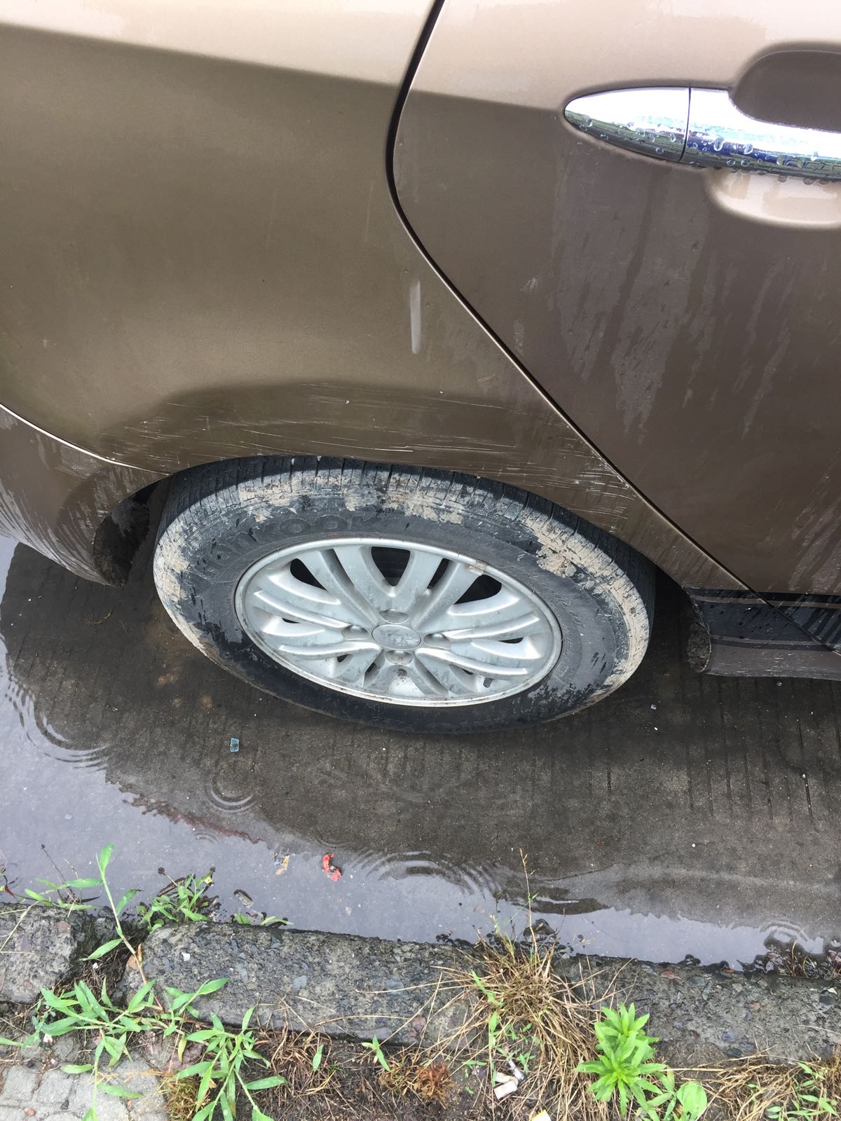 夜黑风高暴雨天倒车一不小心刮了