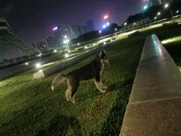 这是昨天晚上带它溜的照片,昨晚11:30