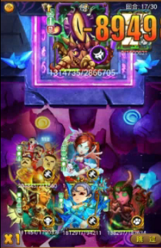 通关要素:1 如上图,第10回合清除第一个小怪,第17回合清空4个小怪,因为当剩下单boss后全体攻击并晕眩的几率非常高,所以很多人都说最后回合输出不够,这也是带3只狂暴系宠物的原因。