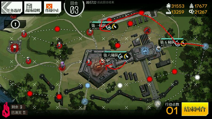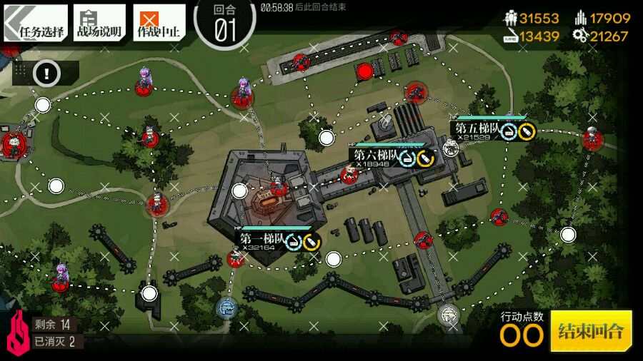 回合一下四个梯队的话这里可以从上面绕着走,就能20杀了