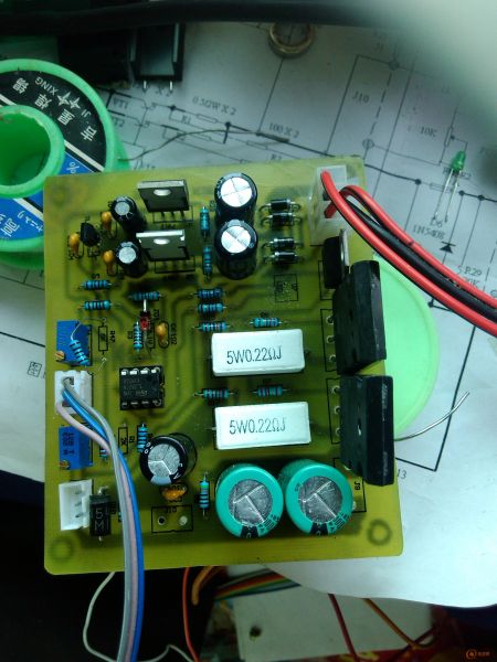 电流调试,比较不顺利。过流显示发光二极亮时,电压不降反升,测5脚6脚电压在正常值内。后来坐下静静一想,可能是发光二极管损坏或是装反了。果不其然是发光二极管装反了。更正后,电流粗调正常。由于买的表头都没有回,先只能粗调了,要精调得等大功率负载和电流表才行。