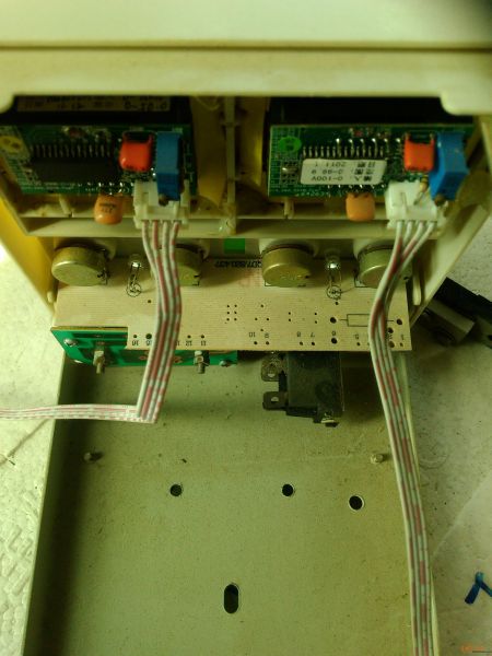 2.通电后发现不能上到30V最高22V。检查交流26V输入端无电压,再打开套在抽头与线连接处的绝缘黄腊管发现开焊。焊好再次通电可以到30V了,但是第二个切换继电器在切换临界点乱跳,拆下板子来检查发现迟滞反馈电阻开焊.