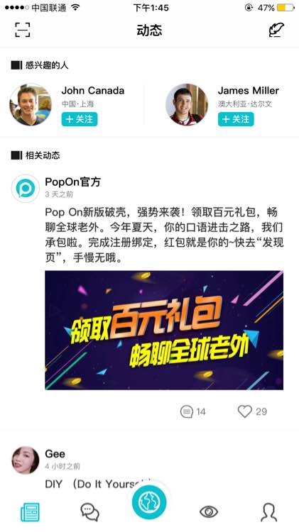 加入pop on,领取百元大礼包,提升口语表达能力。稳过四六级,朋友遍天下!加入我们,加入胜利者的阵营!来自管理系