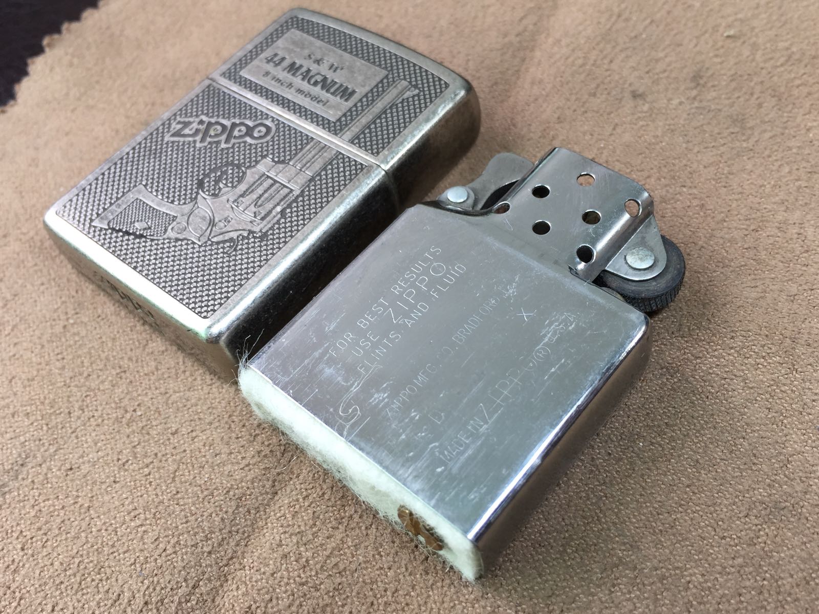 【具体描述】二手1994年5月 古银机 史密斯威森 (S&W)44 MAGNUM 经典8英寸大口径。古银底板全幅蚀刻填漆工艺。机身正常使用擦丝,无磕碰无划痕。铰链正常,原配94D内胆打火强劲,同期盒说。